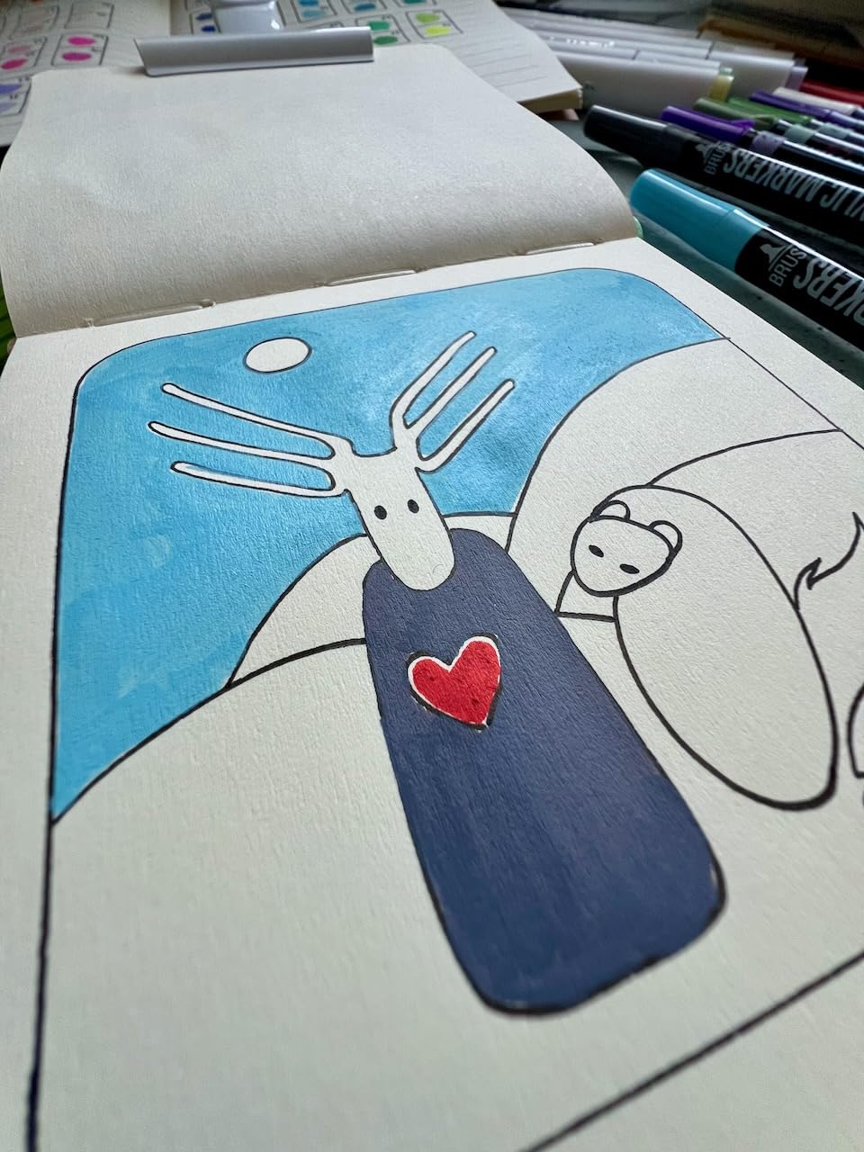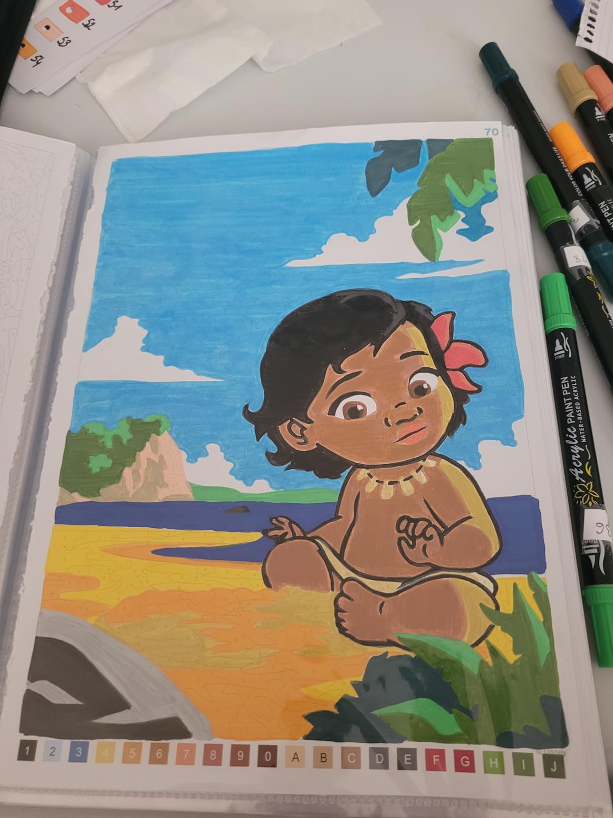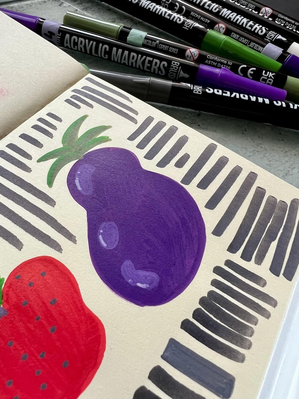 Im Gegensatz zu herkömmlichen Alkoholmarkern, die das Papier durchtränken, legt sich unsere Acrylformel auf die Oberfläche. Das Ergebnis: Sie können in Ihren Lieblingsheften oder sogar beidseitig auf einer Seite kolorieren – ganz ohne Risiko von Flecken auf der Rückseite.